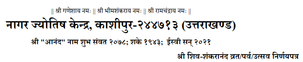 श्री शिव-शंकरानंद व्रत/पर्व/उत्सव निर्णयपत्र